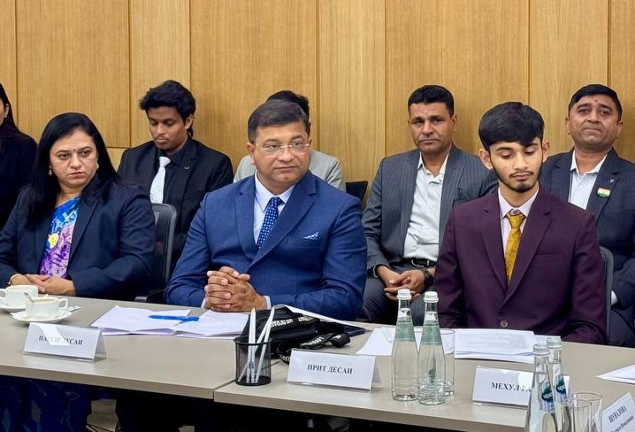 29 сентября с.г. на площадке Центра социально-консервативной политики (ЦСКП) прошла встреча с индийской делегацией, представлявшей Гуджарат — один из ведущих штатов страны по уровню и разнообразию промышленного производства, сельского хозяйства, энергетики, транспорта, туризма. Руководитель делегации Пареш Десаи — вице-президент Всеиндийского Панчаят Паришад (система органов местного самоуправления), а также Президент Панчаят Паришад Гуджарат-Прадеш, известный предприниматель, выступил с содержательным сообщением о важности диалога между нашими странами, возможностях торгово-экономического и иных видов сотрудничества, а также представил индийских участников встречи.